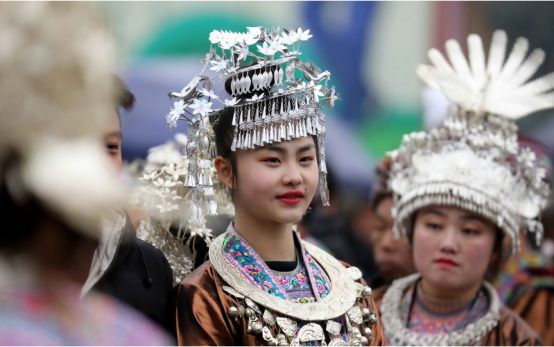 苗族頭飾主要是以銀飾為主。苗族女孩從學會走路開始,父母就會給女兒制作一套苗族民族盛裝和頭飾,苗族女孩一般6歲左右就可以參加每年的民族盛會,并且從小學習化妝技術。苗族的盛會主要集中在春節(jié)后,也叫坡會,就是山坡上的聚會,這一天苗族姑娘就會穿上珍藏已久的民族盛裝,戴上頭飾,把自己打扮的漂漂亮亮,參加蘆笙踩堂舞,展示自己的美麗一面。