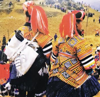 要論“疊穿”的數(shù)量之最,則當屬貴州大方縣顯母村的苗族女性了。與苗族慣用銀飾的固有印象不同,這里的苗族女性鮮以銀為飾,她們用數(shù)量極為可觀的服飾“疊穿”來彰顯富裕。節(jié)日里,顯母村的苗族女性換上盛裝——數(shù)條百褶裙系在腰間,塑造出豐腴的臀部造型,內(nèi)層裙子素凈無花,外層裙子則布滿條帶狀蠟染裝飾。在這個難得的大型社交場合,未婚女孩通過“疊穿”后的獨特造型來展示自己的魅力,衣物的數(shù)量和精致程度成為了吸引異性、獲得肯定的重要標準和獲得美好婚姻的重要條件。到了婚禮時,女性所著裙子的數(shù)量更是可達35條。婚后,她們要在裙邊加上一圈深色邊飾以作標識。