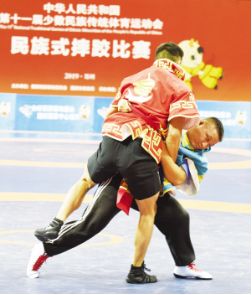 ?、咴颇详犨x手在陀螺男子團體賽中郭浩攝