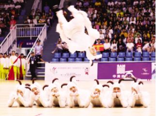⑨北京隊(藍色)與重慶隊在花炮比賽中 王頌攝