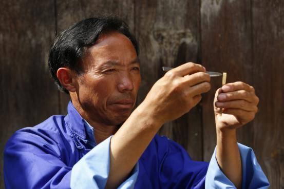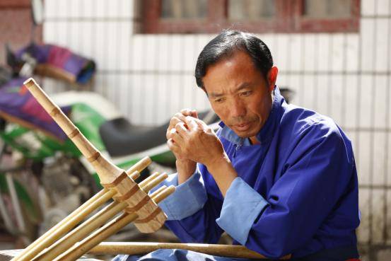 最難的是敲打簧片、割簧片、校單音、校和音這四個程序,最細(xì)致,最需要掌握的就是割簧片。把竹管的聲音和簧片的聲音全部調(diào)成一致,然后還要校正聲音。把單音校好以后還有雙管的,如果不把聲音校準(zhǔn),雙管就會和不起來,吹起來也不好聽,就不能用。