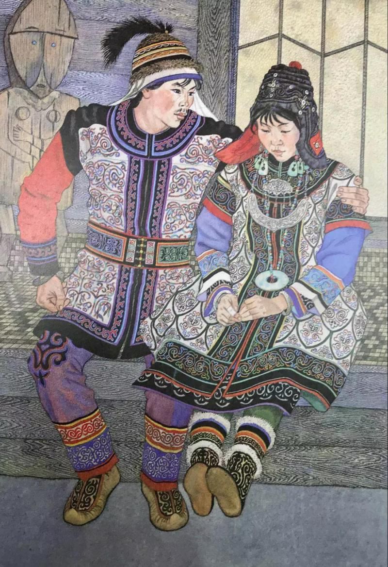赫哲族和那乃族的婚服也稱“樹服”,樹服對赫哲族和那乃族的婦女有著非凡的意義,女子在結(jié)婚時穿一次,在生命結(jié)束時穿一次,因此有著“樹服一件托生死”的說法。