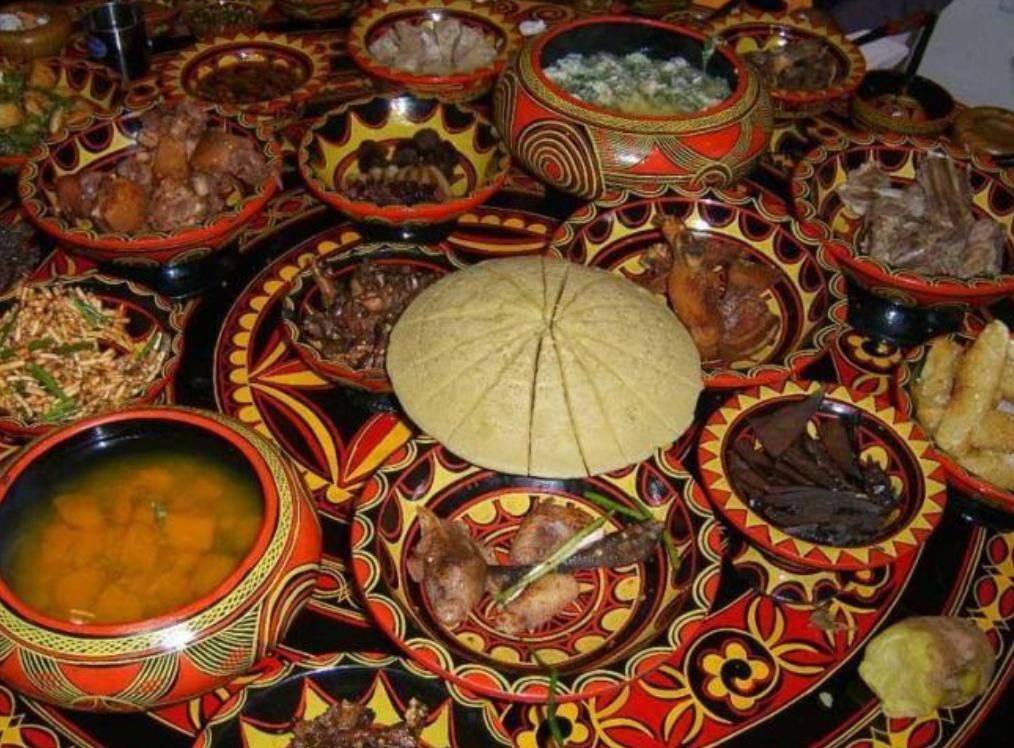 在吃方面,彝族人民的飲食習(xí)慣大多與漢人相同,只是主食以土豆、蕎麥、玉米等粗糧為主,其中比較有名的就是“彝族八大碗”,現(xiàn)代八大碗一般是清蒸魚(yú),無(wú)量山烏骨雞湯,紅墩包肉,紅白豆腐,干酥肉,臘三線肉、吹泡肝拼盤(或排骨煮蘿卜),景東小炒肉,炒黑木耳干筍、糖藕、蛋卷或蒸豬膀。