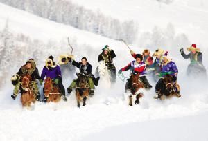 新疆維吾爾自治區(qū)喀納斯冬季那達慕賽馬。 陳嶺攝