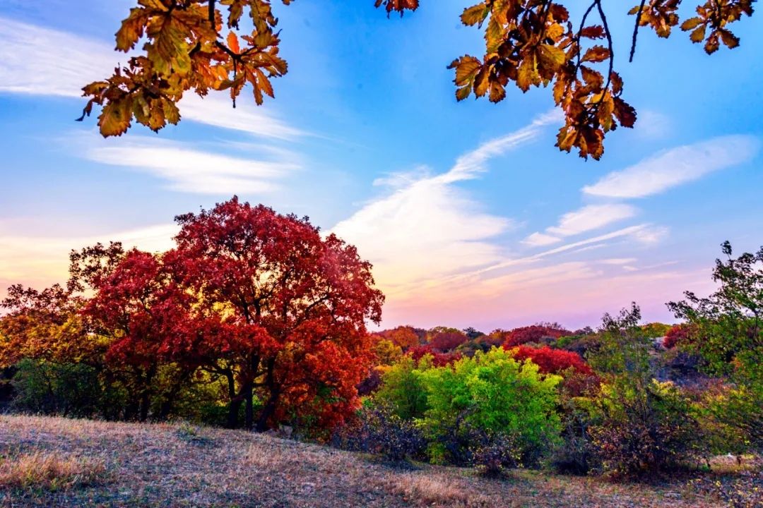 楓林霜葉彩蝶翩,秋韻天成紅滿山。