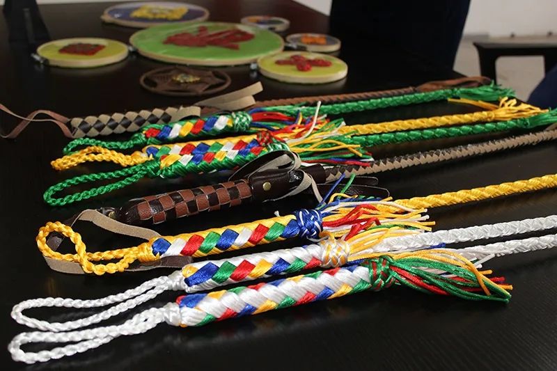 科爾沁繩結(jié)技藝是通遼市科爾沁區(qū)一項(xiàng)傳統(tǒng)民間技藝,它是從中國古老的繩結(jié)技藝發(fā)展而來,逐漸形成了自己的特色和體系,產(chǎn)生了《蒙古馬鞭》、《蒙古捕夢網(wǎng)》等代表作品。作品主要來源于游牧民族生活中的日常實(shí)用,比如馬龍?zhí)?,馬鞭,固定蒙古包的綁繩,蒙古服的扣子等。2018年《結(jié)繩技藝》確定為盟市級非物質(zhì)文化遺產(chǎn)項(xiàng)目。近年來隨著國家對非物質(zhì)文化遺產(chǎn)的重視和大眾對于“中國結(jié)”的關(guān)注,科爾沁繩編又重新走入人們的視野??茽柷呃K編技藝傳承人經(jīng)過多年的研習(xí)和挖掘,創(chuàng)造了很多經(jīng)典作品,使這門古老的技藝煥發(fā)出新的光彩。