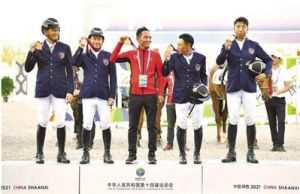 9月21日,西藏競技馬術(shù)隊以總罰分106.5分位居第一,奪得第十四屆全運(yùn)會馬術(shù)三項賽團(tuán)體賽冠軍。