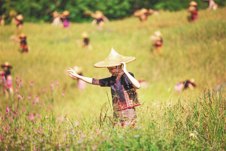 11月21日,在白沙黎族自治縣青松鄉(xiāng)擁處村、青松村等村莊的山坡上、山谷里,放眼望去,在群山疊翠間,漫山遍野都是金黃色的山蘭旱稻,這般豐收的場景尤為賞心悅目。當天,2021年白沙“啦奧門”山蘭文化節(jié)在青松鄉(xiāng)擁處村啟幕,活動旨在讓更多的人知曉海南黎族山蘭旱稻的農(nóng)耕文化,進一步提升“啦奧門”山蘭文化節(jié)民族品牌活動的影響力,助力鄉(xiāng)村振興“加速跑”。