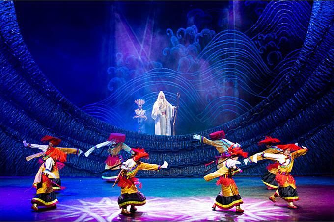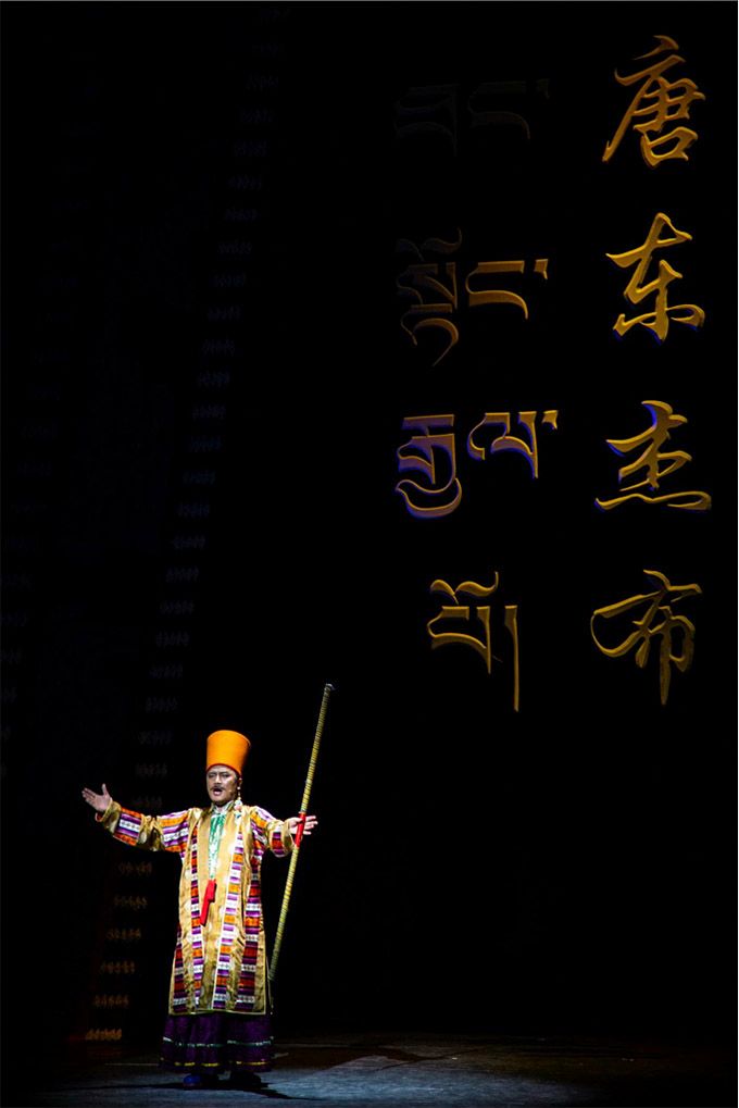 南木特藏戲已有400年的歷史,面對這樣一個彌足珍貴的“中國戲曲活化石”,主創(chuàng)人員對創(chuàng)作主題和表現(xiàn)形式斟酌再三,最后選定以“生命的奉獻”為創(chuàng)作起點,將《唐東杰布》以“老戲新唱”的形式呈現(xiàn)給觀眾。