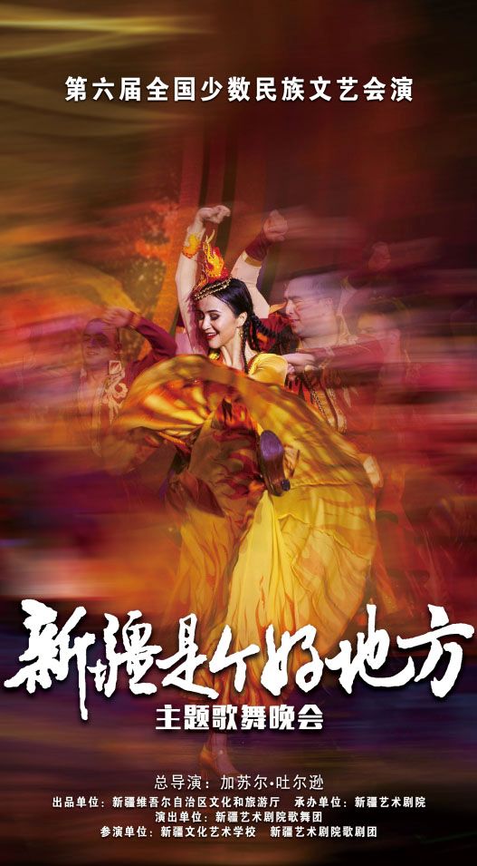 9月11日,由新疆維吾爾自治區(qū)文化和旅游廳策劃指導(dǎo),新疆藝術(shù)劇院統(tǒng)籌打造,新疆藝術(shù)劇院歌舞團(tuán)創(chuàng)作的主題歌舞晚會《新疆是個(gè)好地方》亮相第六屆全國少數(shù)民族文藝會演,在央視網(wǎng)和國家民委門戶網(wǎng)站進(jìn)行展播,向全國觀眾講述了多彩的新疆、團(tuán)結(jié)的新疆、大美的新疆。