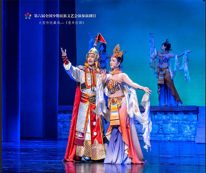 9月14日,作為第六屆全國少數(shù)民族文藝會演參演劇目,由青海省選送、青海省藏劇團(tuán)(黃南藏族自治州民族歌舞劇團(tuán))創(chuàng)作演出的藏戲《意卓拉姆》在央視網(wǎng)和國家民委門戶網(wǎng)站進(jìn)行演播。該劇講述了傳說中的仙女意卓拉姆與人間的諾桑王子相愛,歷經(jīng)挫折與磨難后終成眷屬的愛情故事,表現(xiàn)出意卓拉姆對愛情的忠貞不渝和諾桑王子堅(jiān)韌不拔的意志。