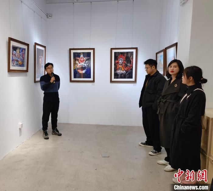 “醒獅、京劇臉譜……”濃厚亮麗的色彩會(huì)就的中國傳統(tǒng)民俗風(fēng)貌,當(dāng)晚在霸都書局亮相后,便吸引了很多青年藝術(shù)愛好者觀賞。