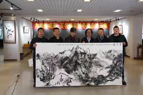 云南省人大常委會(huì)原常務(wù)副主任晏友瓊,云南省文聯(lián)原黨組書(shū)記、主席鄭明,云南省文聯(lián)副主席、云南省美術(shù)家協(xié)會(huì)主席羅江,云南省美協(xié)原副主席孫建東,云南省美協(xié)原中國(guó)畫(huà)藝委會(huì)主任楊為民,昆明學(xué)院美術(shù)與藝術(shù)設(shè)計(jì)學(xué)院教授武新文,國(guó)家一級(jí)美術(shù)師楊正國(guó)、邵培德,云南省美協(xié)陶瓷藝委會(huì)副主任楊忠文,國(guó)家一級(jí)美術(shù)師梁漢森等藝術(shù)家參加本次活動(dòng)。他們分兩組分別合作創(chuàng)作了花鳥(niǎo)畫(huà)《錦上添花》和山水畫(huà)《攀登圖》。