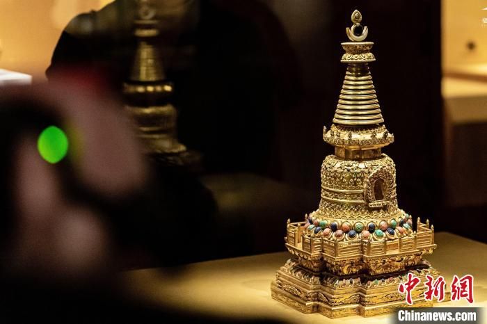 藏傳佛教法器金嵌松石佛塔。 世茂海絲館供圖