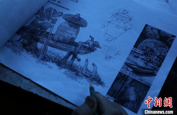 黃大青正在用鉛筆做設(shè)計(jì)圖紙 吳建勛 攝