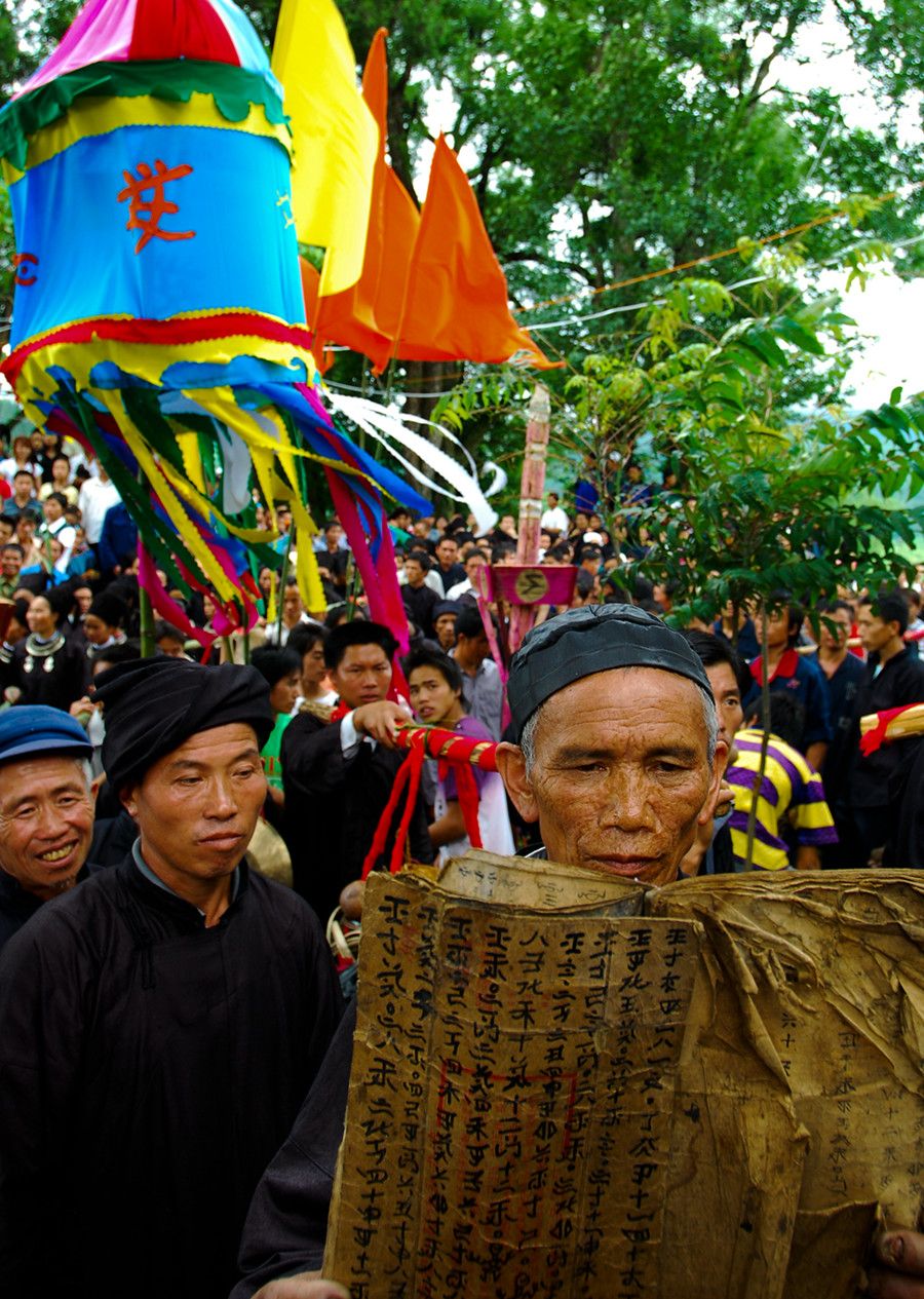 人們傳說只有醉倒了"霞神",它才能永遠留在這方,才能使這里風調雨順。當水書先生念了最后的咒詞,祭典才在鼓樂聲和歡呼聲中結束。最后,各族系將祭肉一并聚攏,聚餐慶祝。天黑之后,人們秘密地將"霞神"收藏起來,至此,"敬霞"活動全部結束。