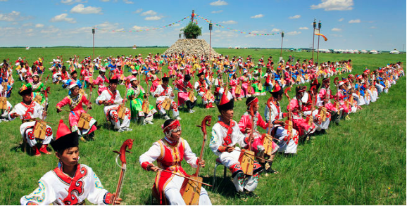 在郭爾羅斯,早期的馬頭琴主要擔當史詩說唱及民歌的伴奏,一首民歌就是一支馬頭琴曲,人聲起便可琴聲合, 尤其是同蒙古民族的“烏爾圖道”(即長調(diào)民歌)相結(jié)合,更具草原文化的韻味。