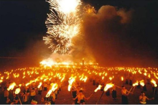 關(guān)于火把節(jié)的傳說較多,有紀(jì)念漢代酋長曼阿南之妻阿南夫人殉夫之事;有三國時(shí)群眾歡送諸葛亮南征得勝回成都之事;有南詔王皮羅閣“火燒松明樓”,柏節(jié)夫人殉節(jié)之事;還有紀(jì)念五谷之神“達(dá)撥”,祈求五谷豐登,六畜興旺之意。