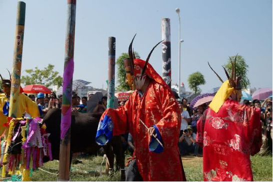 過節(jié)前一天,要“椎殺”一頭公牛,用牛頭、牛尾、牛腳、牛內(nèi)臟祭龍。祭時有法師喃經(jīng)、跳神。牛肉則分給各家各戶或拿到市上出賣,收入作為節(jié)日費用。祭龍后二三天,各戶自拜祖先、三界仙、灶王、地主娘娘等,也是求神靈保佑五谷豐登。又用糯飯、粉蒸肉喂牛,以酬謝它耕作的辛勞,并給牛放假一天,讓它好好休息。嫁出去的女兒則帶上子女和禮品回娘家過節(jié),親戚朋友也常常登門賀節(jié),青年男女則盛裝聚會唱歌,選擇知音?,F(xiàn)在過此節(jié),宗教迷信活動多已廢棄。增加了文體競賽或者開展有關(guān)生產(chǎn)生活方面的科普活動等。