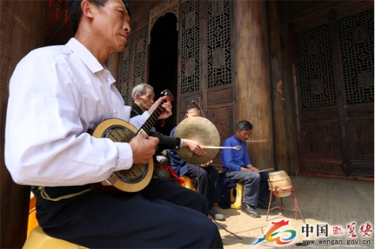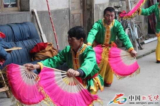 “燈夾戲”,即花燈夾川戲的一種藝術(shù)表演形式,是花燈與川戲饒有新意的巧妙組合,是一種匠心獨(dú)運(yùn)的嫁接藝術(shù)。主要流傳于我縣平定營(yíng)鎮(zhèn)。燈夾戲除了以其精湛的表演形式慶祝豐收景象及生意興隆外,還富有濃厚的宗教色彩。正月初九起燈時(shí),所有戲班子成員在班主的帶領(lǐng)下,身著戲裝,跪拜在花燈菩薩(牌燈)面前,插香點(diǎn)燭、燒錢化紙,待供祭完畢后方可演出。正月十五是“化燈”的日子,戲班子成員要敲鑼打鼓,重新燃燭燒紙,站成一排恭敬祭奉花燈菩薩,然后化燈結(jié)束。