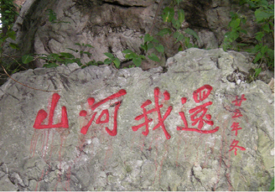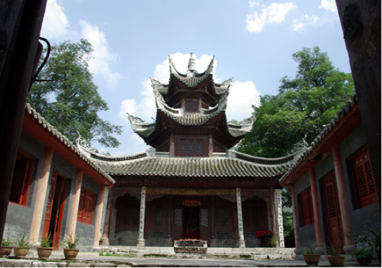 冠山,位于貴州龍里冠山盆地(縣城)東隅,巖山形似金鐘撲地,古木參天,蔥郁蒼翠。明永樂七年(1409)始建的道教活動場所掩蔽其中,可謂“山不在高有仙則名”。在歷史的長河中,雖然道教一去不復(fù)返,但其紫虛觀主體建筑保存尚好,現(xiàn)列為省級文物保護單位,由主體建筑紫虛閣、左右?guī)?、前殿、山門、文昌祠組成二進院式古建筑群。主體建筑為木構(gòu)穿斗式三重檐六角攢尖筒瓦頂,1989年遷入的文昌祠,為木構(gòu)抬梁式歇山青瓦頂,帶吻正脊,戧脊翹角卷草,石質(zhì)柱礎(chǔ)浮雕仙草、竹、梅、鹿等圖案。西南兩面有1936年題刻的“還我河山”、“巨靈一孹”等七方摩崖石刻。建筑物的形制、布局給人一種古樸、滄桑之感。登閣騁目,遠(yuǎn)山峻嶺和鱗次櫛比的樓房盡收眼底,讓人流連忘返。