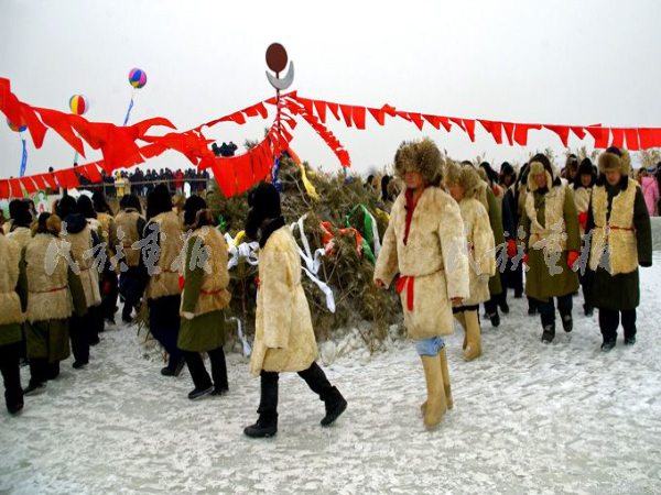 “祭湖”儀式的場面非常壯觀,并帶有幾分神秘的色彩。按照歷代沿襲下來的習(xí)俗,查干湖漁獵必須由當?shù)氐?高望重的“魚把頭”主持儀式,舉行祭祀湖神,喚醒冬網(wǎng),祭拜天父地母,保佑萬物生靈永續(xù)繁衍,百姓生活幸福安康。在冰面上,擺放糖塊、炒米、水果、奶干等供品,點燃香火、炭火鍋,進行誦經(jīng)祝辭,祝愿漁獵平平安安,多出 魚出好魚。
