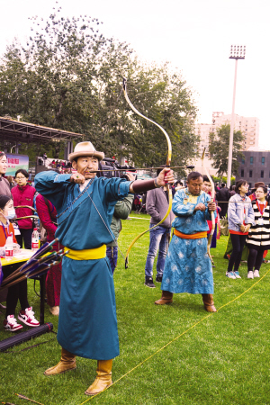 在北京那達慕的射箭賽場上,來自內蒙古自治區(qū)東烏珠穆沁旗的蒙古族牧民斯欽畢力格手持彎弓,目光專注,離弦響箭直中靶心。經(jīng)過幾輪角逐,這位“草原神箭手”榮膺射箭比賽冠軍,獲得3000元獎金。