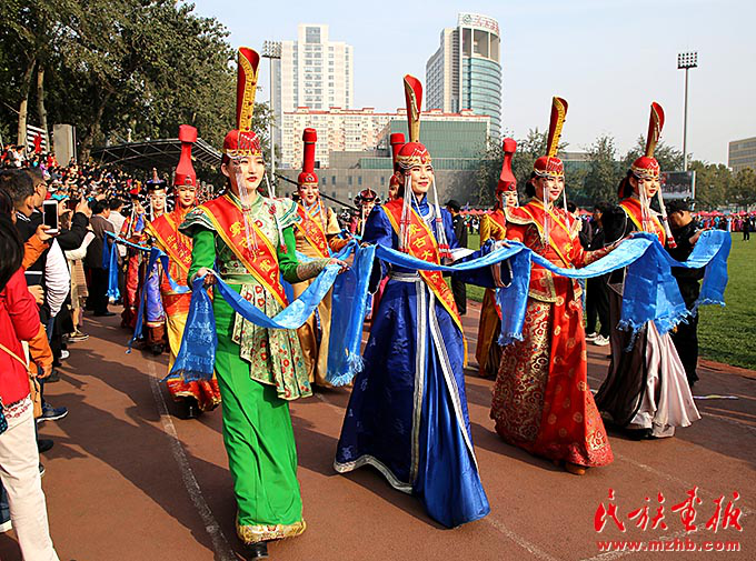 中央民族大學(xué)操場上熱鬧非凡。悠揚的馬頭琴聲,飄香的奶酒,繽紛絢麗的蒙古族服飾,搏克、射箭等競技活動以...