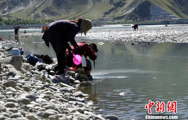 37歲的藏族青年旦增跟記者開玩笑,“自己看上去比實(shí)際年齡年輕,就是因?yàn)槟昴甓紒?lái)沐浴。”他覺得藏族民眾初秋過(guò)“沐浴節(jié)”,能夠提高抵抗力,與內(nèi)地所講的“春捂秋凍”本質(zhì)相同。旦增介紹說(shuō),不能在流水中過(guò)“沐浴節(jié)”的藏族民眾,會(huì)在月光照過(guò)的盆中凈水洗頭。