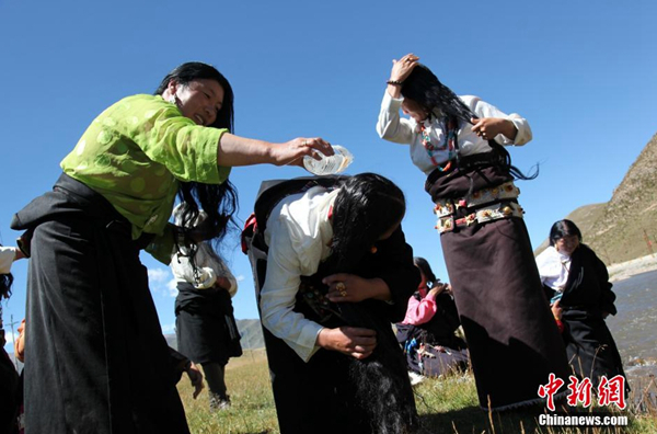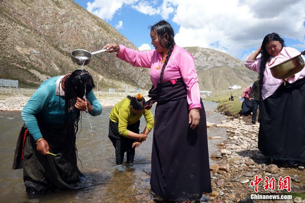 每年的夏末秋初,藏族同胞迎來(lái)一年一度的“沐浴節(jié)”?!般逶」?jié)”,藏語(yǔ)稱為“嘎瑪日吉”,為期7天。這項(xiàng)古老習(xí)俗已經(jīng)延續(xù)了800多年。西藏流傳民謠,“待到棄山星升起,清凈溫暖好沐浴?!币簿褪钦f(shuō),在“棄山星(金星)””照亮雪域高原的七天里,藏族民眾在星光照耀過(guò)的水流中沐浴,可祛除身體病痛、心理雜念,全年健康。