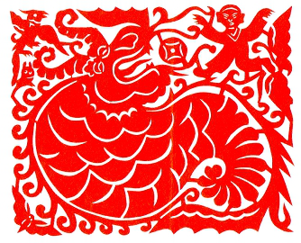 苗族民間剪紙的獨特之處還表現(xiàn)在構思的新穎奇妙上。如《姜央兄妹合磨成親》圖,藝人為了擴大意境,打破了時間與空間的限制,把發(fā)生在不同時間與空間的事物描繪在一幅畫面上。作者大膽而巧妙地把畫面分成天空、山頂和山腳三部分,來表現(xiàn)三個不同的情節(jié)。天上飛的是蝴蝶和山雞,山頂上站著拍手叫好的姜央,山腳下站著姜央的妹妹以及已合上了的石磨,還有被從山頂上滾下來的石磨嚇驚了的野兔。這幅畫面生動形象地描繪了洪水泛濫后,地上的人都被淹死了,姜央和妹妹藏在葫蘆中幸免于難,為了繁衍人類,兄妹只好成親等情節(jié),非常巧妙地使這一遠古傳說得到精致的再現(xiàn)。又如三接式袖花剪紙圖案,畫面中間是雙象斗獸,上方是人馴蠶身龍,下面是龍象相爭,其余空處是魚鳥蟲蝶。這種奇特的構思,把原始社會人與自然的關系表現(xiàn)得淋漓盡致。