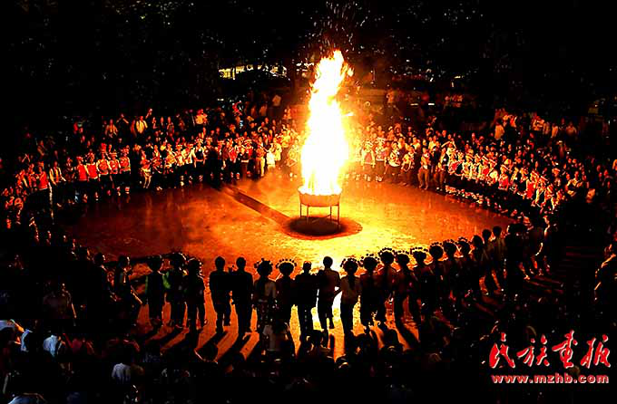 火把節(jié)是彝族傳統(tǒng)節(jié)日中最普遍、最隆重、最富有民族特色的節(jié)日,一般在農(nóng)歷六月二十四至二十六舉行,楚雄彝族火把節(jié)于2006年5月經(jīng)國(guó)務(wù)院批準(zhǔn)為第一批國(guó)家級(jí)非物質(zhì)文化遺產(chǎn)保護(hù)項(xiàng)目。節(jié)日內(nèi)容集民俗活動(dòng)、經(jīng)貿(mào)活動(dòng)、文體活動(dòng)和社交活動(dòng)于一體,像磁石一樣吸引著各族群眾,許多人就是通過(guò)參加火把節(jié)認(rèn)識(shí)了彝族,知道了楚雄彝族自治州的。節(jié)日期間,各族人民載歌載舞,?;鸢选⒎叛婊?,火把節(jié)成了弘揚(yáng)彝族文化、促進(jìn)對(duì)外交流、開(kāi)展經(jīng)貿(mào)活動(dòng)和各族人民大團(tuán)結(jié)的盛會(huì)。