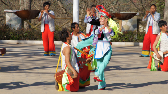四弦舞流傳于云南峨山、新平、雙柏等彝區(qū),它以載歌載舞的形式,表達(dá)勞動(dòng)時(shí)的歡愉。跳舞時(shí)男彈月琴,女拍手而舞,手上動(dòng)作不多,但腳上的動(dòng)作富于變化。參加的人數(shù)不限,跳時(shí)無固定順序,由彈四弦的領(lǐng)頭人決定,男子要善于動(dòng)作的變化,女子要反應(yīng)靈敏地及時(shí)跟上。跳至高潮,只見舞者忽進(jìn)忽退,忽分忽合,變化復(fù)雜快速,動(dòng)作靈巧柔和。