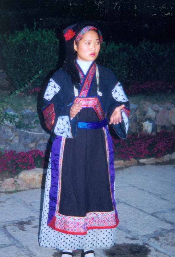 西南地區(qū)的服飾分布地區(qū)包括貴州省黔南布依族苗族自治州羅甸,黔西南州望謨、冊亨、貞豐、安龍、興義、興仁、安順市的鎮(zhèn)寧、關(guān)嶺、紫云三縣的南部以及云南省羅平等縣(市),基本上都屬于布依語第一土語區(qū)。這個(gè)地區(qū)婦女普遍穿大襟衣、長褲腳。衣服的盤肩、袖口、襟沿鑲有蘭干。褲腳為大褶邊,或藍(lán)色褲腳鑲一截青布和蘭干。衣服的長短和褲腳的大小,各地區(qū)都不相同。冊亨一帶衣服較短,褲腳短小,包花格長帕,胸頸掛彩珠項(xiàng)圈,手套玉石或骨制手鐲;望謨一帶青年婦女把花格帕折疊后纏戴;貞豐一帶的衣服較長,褲腳不折邊,青年和老年婦女基本相同,但青年婦女包的花帕形狀如牛角(人稱“牛角帕”);靠近北部地區(qū),衣褲都較長,而且不鑲蘭干,衣褲和帕子多為青色;安龍、興義一帶則多包白帕,衣褲亦不鑲蘭干;西南一帶地區(qū)衣褲已漸不鑲蘭干,但還穿自織的土布衣服,頭上還包花格帕,一些地區(qū)與漢族婦女裝束完全一樣了。