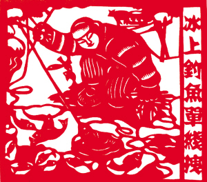 此外,撫順滿族剪紙在畫面上還經(jīng)常結(jié)合滿文,使不同的人物、情節(jié)都凝固于畫面,豐富了作品的敘事內(nèi)容。這種圖文并茂的剪紙造型,也是其一大亮點。