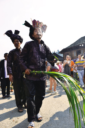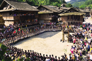 2014年7月18日,貴州省黎平縣雙江鎮(zhèn)黃崗侗寨侗族同胞舉行了一年一度的“喊天節(jié)”。“喊天節(jié)”又稱“祭天節(jié)”或“求雨節(jié)”,每年農(nóng)歷六月十五日舉行。當(dāng)天,侗族同胞開展了祭薩、 祭天、捕魚比賽、鼓樓對歌等活動。 王炳真攝影報道