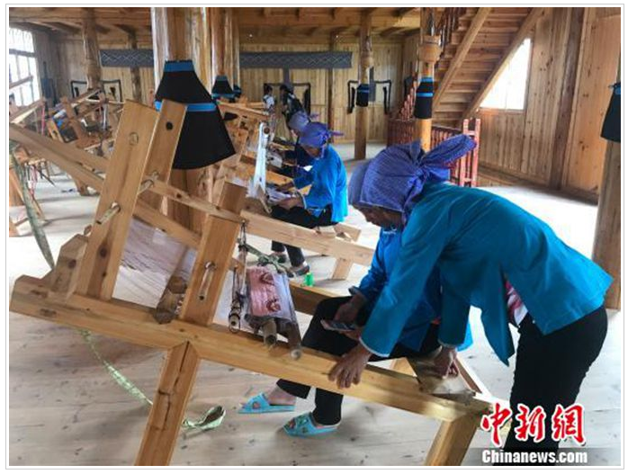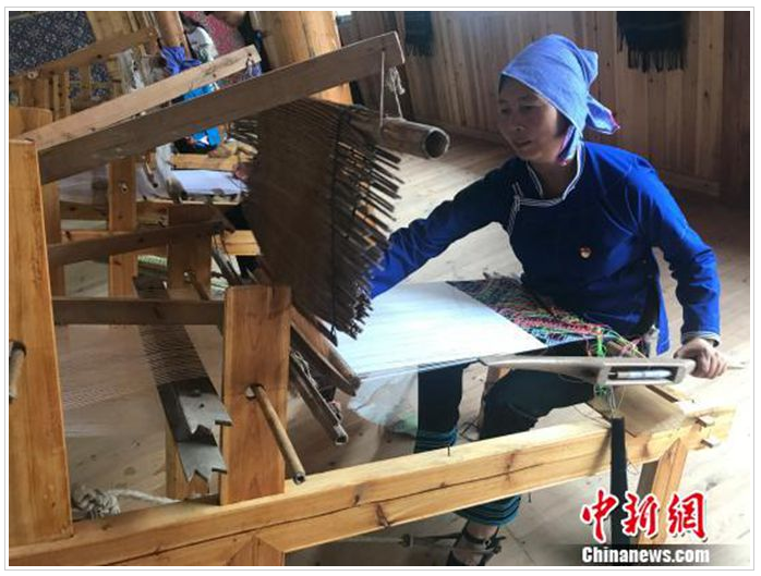 聽聞姐姐在這里織錦每月可拿到3000多元的收入,今年7月,此前在廣東務(wù)工的文坡村二組村民龍練霞干起了這份家門口的工作,再也不想外出了?!凹确奖阏疹櫦胰?,又可以抽空干點農(nóng)事。”今年30多歲的龍練霞說。和她一樣,看到侗錦的銷路慢慢打開了,村里許多在外務(wù)工的年輕人也紛紛返鄉(xiāng),拾起祖輩們的老手藝。