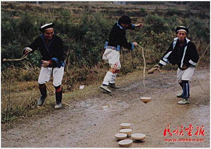 白褲瑤男子在打陀螺(張小寧 攝影)