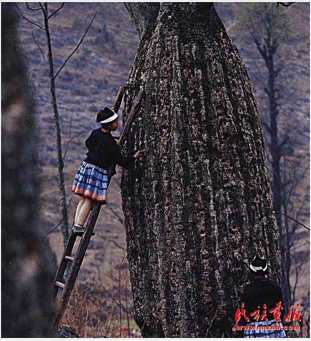 形如酒瓶的粘膏樹(shù),它的汁液是白褲瑤畫(huà)圖的原料