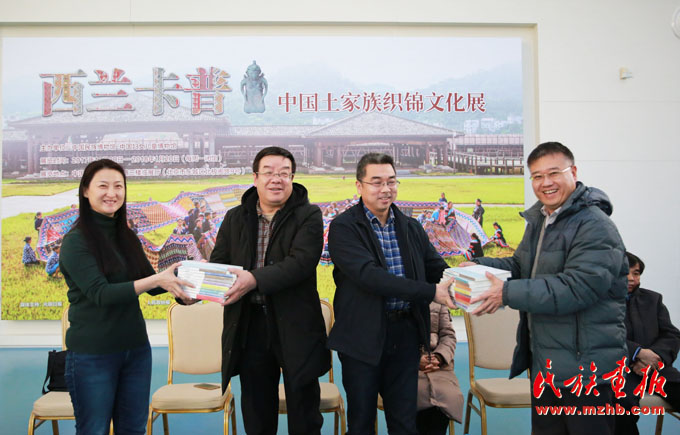 會(huì)上中國(guó)民族博物館黨委副書(shū)記、副館長(zhǎng)張志文向少數(shù)民族作家們介紹了展覽,他說(shuō):“土家族是一個(gè)歷史悠久的民族,現(xiàn)在有835萬(wàn)人口。土家織錦也有兩千多年的發(fā)展歷史,有250多種傳統(tǒng)圖案,是中國(guó)民間五大織錦之一,堪稱中國(guó)服飾文化中的奇葩。中國(guó)民族博物館從歷年征集收藏的300多幅清代以來(lái)的土家織錦中,選取了156幅精品土家織錦、21分鐘傳承人視頻和120余幅土家民族風(fēng)情照片。我們和中國(guó)婦女兒童博物館合作舉辦了這個(gè)高品質(zhì)的專題展,旨在傳承和弘揚(yáng)土家族國(guó)家級(jí)非物質(zhì)文化遺產(chǎn)?!?/p>