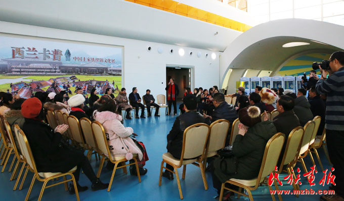 2018年1月11日,中國(guó)婦女兒童博物館展出的“西蘭卡普——中國(guó)土家族織錦文化展”迎來(lái)了42位特別的觀眾,他們是魯迅文學(xué)院第30期少數(shù)民族文學(xué)創(chuàng)作培訓(xùn)班的學(xué)員,來(lái)自全國(guó)18個(gè)省市、16個(gè)民族的少數(shù)民族作家,他們代表著中國(guó)民族文學(xué)創(chuàng)作的新生代。參展前舉行了座談會(huì),中國(guó)民族博物館黨委副書(shū)記、副館長(zhǎng)張志文,中國(guó)婦女兒童博物館副館長(zhǎng)劉華彬,魯迅文學(xué)院副院長(zhǎng)邢春等領(lǐng)導(dǎo)以及第30期少數(shù)民族文學(xué)創(chuàng)作培訓(xùn)班的學(xué)員們參加了座談會(huì)。