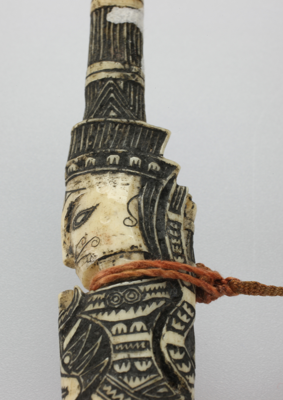 黎族的人形骨簪,就有其獨樹一幟的風(fēng)格和魅力。黎族,中國最古老的民族之一。據(jù)考證,黎族是從古越的一支——駱越發(fā)展而來,早在3000年前,其先民就在海南島這塊土地上生存繁衍。黎族織錦、骨雕等傳統(tǒng)手工技藝被認(rèn)為承載了其對于生命起源、祖先認(rèn)同、遷徙之路的記憶和想象。作為黎族骨雕藝術(shù)的集大成者——骨簪,則完美呈現(xiàn)了“技”與“意”的結(jié)合。