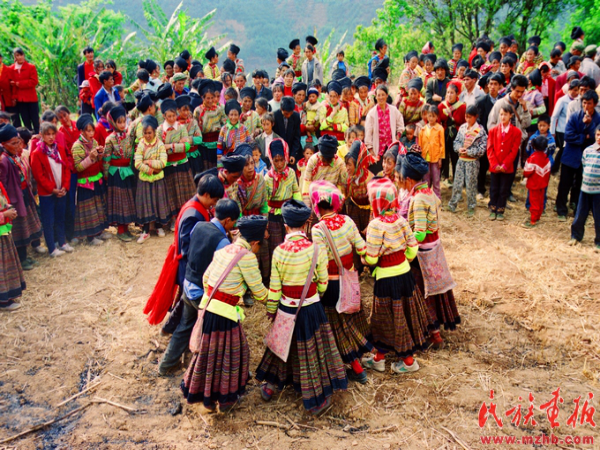 按傈僳族傳統(tǒng)婚俗,第二天早晨,新郎和新娘要帶未成年的弟妹上山放羊,表示新家庭的誕生,新生活的開始。