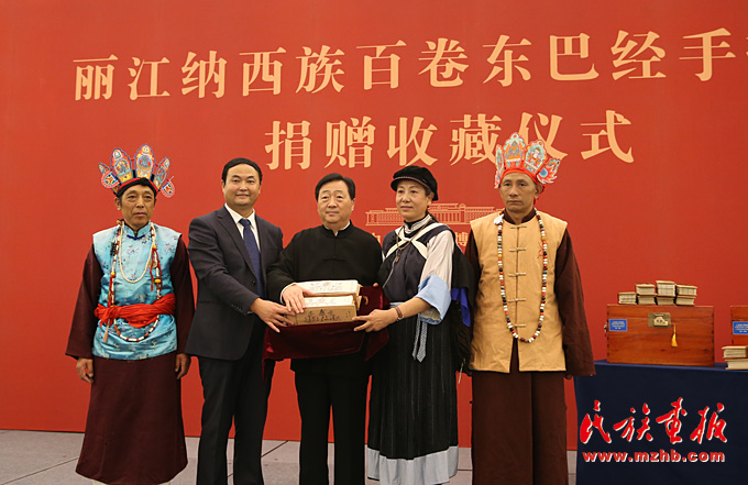 2017年12月7日上午,云南省麗江市委市政府向中國國家博物館捐贈《云南麗江納西族一百五十卷東巴經(jīng)手抄本》及《納西東巴古籍譯注全集》(100卷)儀式在中國國家博物館舉辦。
