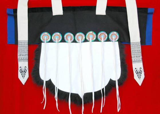 綴繡花圓布盤羊皮女披肩,主要流行于云南省玉龍納西族自治縣和麗江古城一帶,是當(dāng)?shù)丶{西族婦女的傳統(tǒng)背飾,...
