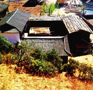 納西族的民居在民國時期普遍呈“用圓木縱橫相架,層面高至七、八尺,即加椽行,覆之以板,石壓其上”的“木...