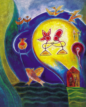 納西族東巴教的長幅布卷畫,通稱為“神路圖”,它是東巴教繪畫中的巨作。此類畫一般長10-20米,寬1尺...