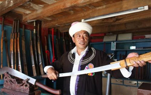 景頗族男子隨身背著一把長刀,說起這個(gè)習(xí)俗的由來,還有個(gè)古老的傳說故事。