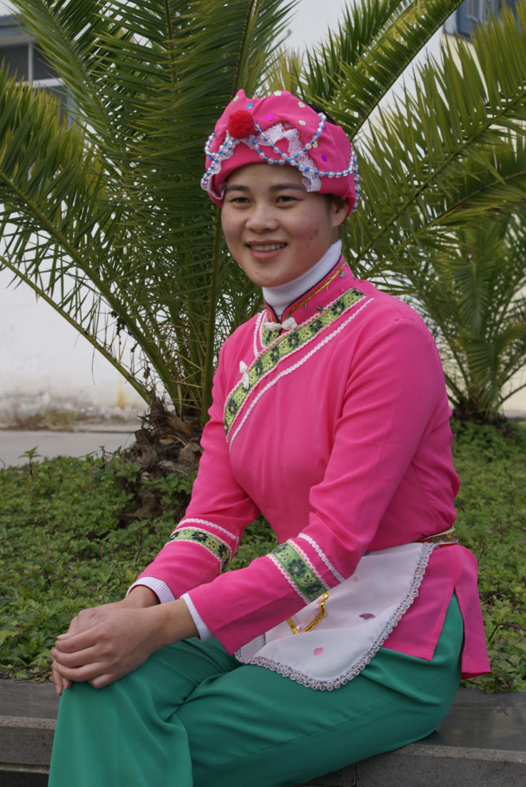 婦女都穿斜邊繡有花紋的大襟上衣,寬腿大襠、小邊褲腳長(zhǎng)褲。年輕人緊身、窄袖,袖口及上襟不繡花。中、老年婦女都挽發(fā)髻,戴青布包頭巾,腰系用抽紗織成的帶子,穿織有花紋圖案的圍裙,腳穿草鞋或尖頭、單梁、繡花的船形布鞋,青年婦女扎長(zhǎng)辮子,未婚者額前留有“劉?!保ㄘ锢凶迦朔Q為“纓子”),無(wú)繡花尖頭布鞋。成年婦女的飾物還有銀質(zhì)鏤花耳環(huán)、手鐲、發(fā)簪、銀絲鐲、玉發(fā)簪等。嬰幼兒用的背帶,一般在女子出嫁懷孕后,娘家就給準(zhǔn)備好,背帶用多色絨線繡上花卉、蟲(chóng)鳥(niǎo)等吉祥圖案,做工比較精致、美觀。