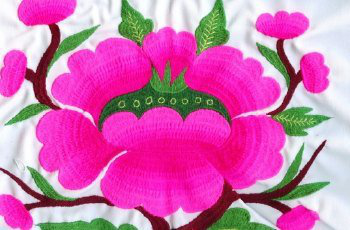 刺繡針法主要有鎖繡、平針繡、參針繡、壓針繡和眉毛花、納紗繡、補花繡、十字繡、編針繡、牽花繡、緝針繡、云子花等。鎖繡針法采用繡線環(huán)圈鎖套而成,即線線成環(huán)、針針套扣,落針在起針旁,最后繡成的紋路效果如鎖鏈結(jié)構(gòu),因而得名鎖繡。羌族鎖繡發(fā)展成為各式針法,并成為羌族刺繡的重要針法。鎖繡主要運用于圍腰上的裝飾紋樣,平針繡又稱“齊針繡”,是繼鎖繡之后另一種古老而傳統(tǒng)的針法。平針繡的繡線排列整齊均勻,不露地、不重疊,以繡跡的絲理顯現(xiàn)紋飾的質(zhì)感,繡紋具有閃光緞面的效果,多用于小塊面的刺繡。參針繡又稱“套針繡”,是在平繡的基礎(chǔ)上增加深淺變化,以表現(xiàn)花、葉等紋樣的明暗,使大面積的紋樣層次豐富而有立體感。在平繡和參針繡的基礎(chǔ)上,羌族婦女創(chuàng)造了壓針繡的針法,她們又稱之為“撇花”。在繡一針長線后,又用一針短線壓在原長線上,并確保每繡一針長線后均在同一位置壓上短線,如編籬笆一般,紋樣邊緣整齊,紋樣內(nèi)的繡線交錯有致,產(chǎn)生富有變化的視覺效果。穿花繡、九針繡,多用于頭帕以及飄帶上。納紗繡的針法是在素色面料上按經(jīng)緯紗線交織的孔進(jìn)行刺繡,并沿著一個方向施針,如垂直的經(jīng)線方向或水平的緯線方向,通過露出面料地色而形成花紋。補花繡又稱貼花繡、貼布繡。羌族婦女稱之為“拼花”,即將色布拼接后形成花紋。補花繡制作簡便,紋樣簡潔大氣,裝飾效果強烈。制作時,將剪好的色布貼于服裝、鞋面所需要裝飾的部位,然后用鎖扣繡、結(jié)邊繡或緝針繡的針法固定色布。十字繡又名挑花、架花、數(shù)紗繡,在羌繡中占有重要地位,十字繡繡品種類多、數(shù)量大、表現(xiàn)的內(nèi)容非常豐富。羌族十字繡,既有嚴(yán)密的構(gòu)圖,又有豐富的內(nèi)容、對比的色彩和精彩的紋樣,還有精煉而靈活的針法。類似十字繡的刺繡,繡線相互編織、交錯、重疊,繡線排列、交織勻稱,交錯的繡線如同編織的網(wǎng),可形成各種塊面和線條。牽花繡又稱“纖花”、“兩面花”、“里面花”,即采用單根繡線,繡針按面料的經(jīng)緯線走向,有規(guī)律地來回穿刺,形成上針、下針、順針、回針,繡出的圖案在面料的里和面均呈現(xiàn)規(guī)則的幾何形花紋。緝針繡以回針法運針,即針腳頭尾相接,因此民間又稱為“倒鉤針”。緝針繡要求針腳長短均勻整齊,繡紋自然流暢,此針法多用于補花繡,將補繡的布片固定在裝飾部位。云子花又稱“云云花”,多用于云云鞋鞋面上補花圖案的裝飾。因此,“羌族刺繡既繼承了傳統(tǒng)針法豐富而又嚴(yán)謹(jǐn)?shù)奶攸c,又體現(xiàn)了本民族刺繡針法的靈活性與多樣性。